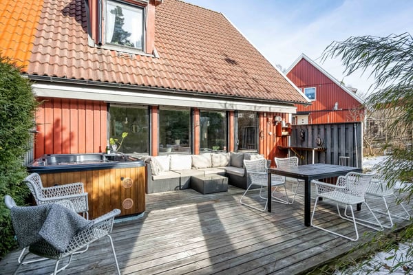 - BeskrivningKONTAKTA ANSVARIG MÄKLARE REDAN IDAG FÖR EN EXKLUSIV FÖRHANDSVISNING! Varmt välkomna till detta mysiga kedjehus på populära Brunnsgatan, här bor Ni i ett familjevänligt område med närhet till det mesta. På entréplan välkomnas Ni av hallen som har gott om plats för avhängning, vidare finner Ni ett stort kök utrustat med kyl, frys, diskmaskin, spis, ugn, fläkt och diskho - här finns även en tillhörande matplats med plats för stort matbord. Tvättstugan ligger med direktacess från köket och är utrustad med både tvättmaskin och torktumlare. Vardagsrum med utgång till altanen som ligger i direkt västerläge, samt ett badrum utrustat med dusch, toalett, handfat och spegelskåp. På övre plan finns hela tre sovrum, en klädkammare och ett till badrum som är utrustat med toalett, badkar, handfat, spegelskåp och takfönster. Exteriört så har huset en stor altan på baksidan med spabad, samt ett förråd på framsidan. På Brunnsgatan bor ni ett stenkast ifrån matbutiker, kommunikationer, dagis och skolor. - Söderläge - Luftvärmepump - Spabad - Garage i länga - Stort förråd på tomten - Barnvänligt område