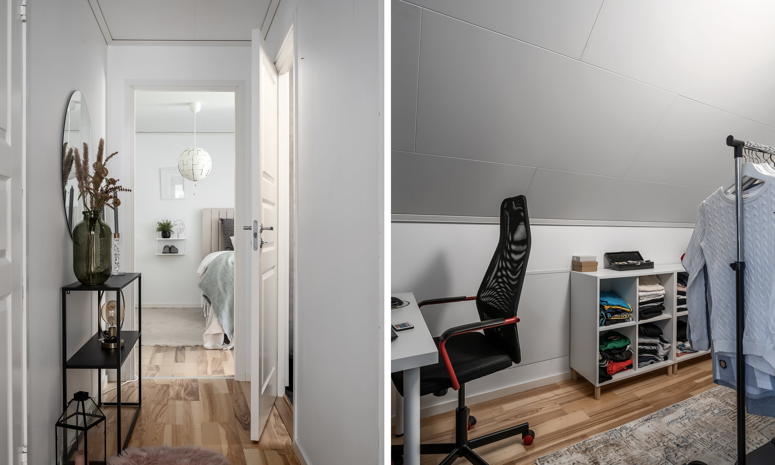 Sovrum 2 är även det rymligt. Det finns plats för dubbelsäng, sängbord och skrivbord.