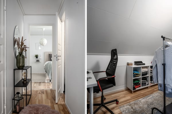 Det tredje sovrummet är även det rymligt. Här finns det plats för dubbelsäng, sängbord samt skrivbord om så önskas.