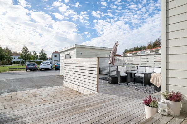 - BeskrivningVälkommen till Riavägen 4 – Rymligt och stilrent radhus i barnvänligt område nära naturen Letar du efter ett hem där funktion möter trivsel i en naturnära miljö? Välkommen till Riavägen 4 i populära Västerhaninge – ett välplanerat radhus med plats för hela familjen! Här bor du i ett lugnt och barnvänligt område, omgiven av grönska och lekplatser som bjuder in till lek och gemenskap. På bekvämt gångavstånd finns både skolor, förskolor och goda kommunikationer. När du kliver in möts du av en ljus och välkomnande entré med goda förvaringsmöjligheter. Vidare in i bostaden finner du ett luftigt och trevligt kök med gott om arbetsyta och förvaring – perfekt för både vardagsmatlagning och festliga middagar. Här ryms en matplats för upp till åtta personer. Det ljusa vardagsrummet är hemtrevligt och rymmer både soffgrupp, soffbord och mediamöbel. Härifrån når du den soliga baksidan med altan – en perfekt plats för grillkvällar, lek eller avkoppling i trädgården. På övre plan finns hela fyra sovrum i bra storlek, vilket ger plats åt både familj, gästrum och hemmakontor. Från det större sovrummet har du även utgång till en balkong med utsikt över området – perfekt för morgonkaffet. Bostaden har två helkaklade badrum – ett med badkar och ett med dusch, tvättmaskin och torktumlare. Med busshållplats några minuter bort tar du dig enkelt till Västerhaninge station. Därifrån går pendeltåget smidigt till både Stockholm C och Nynäshamn. Väljer du istället att ta bussen åt andra hållet kommer du till Årsta Havsbad – ett populärt utflyktsmål med strand och havsbad. Varmt välkommen att boka in dig på visning – detta hem vill du inte missa!