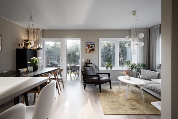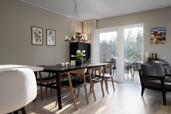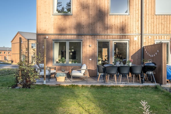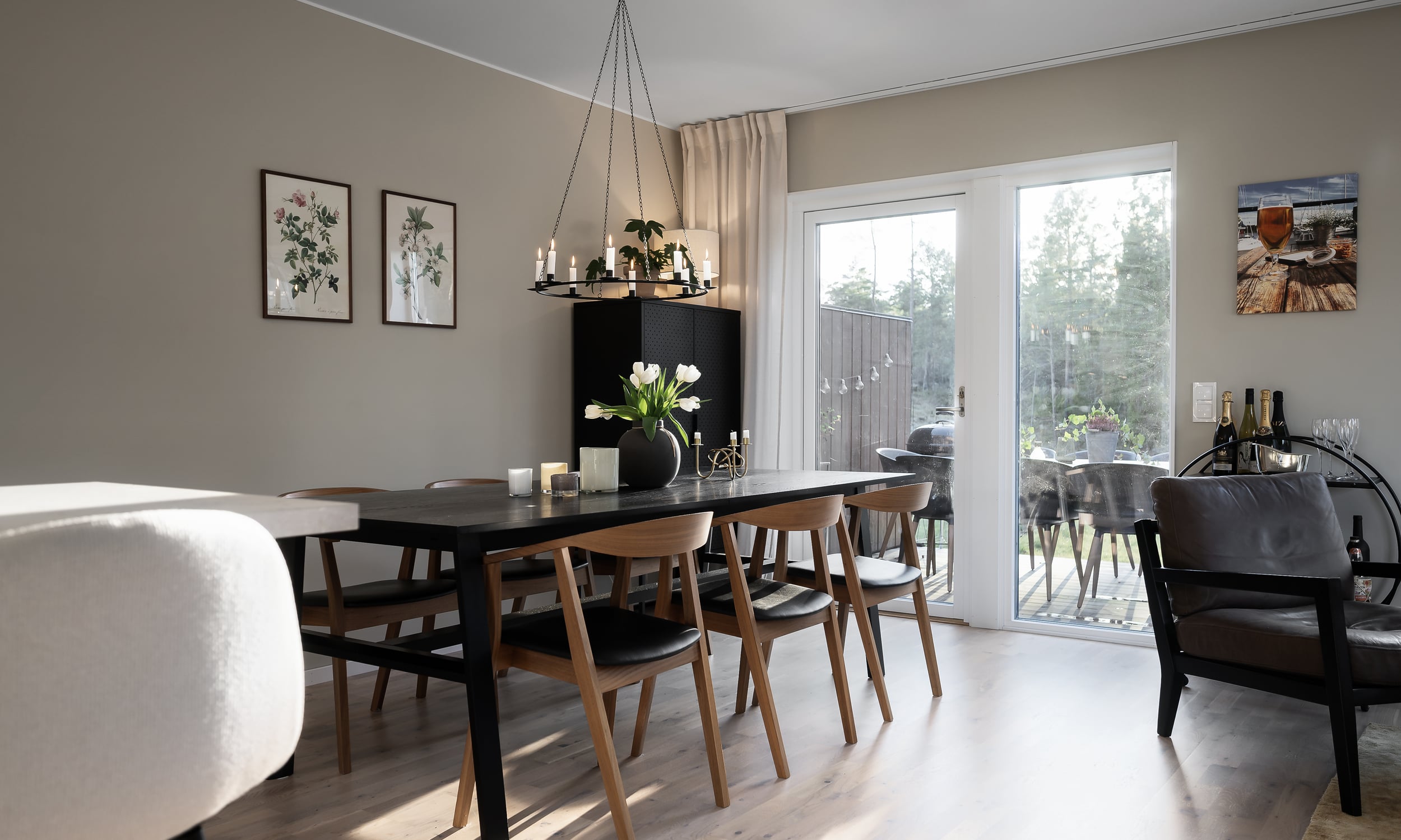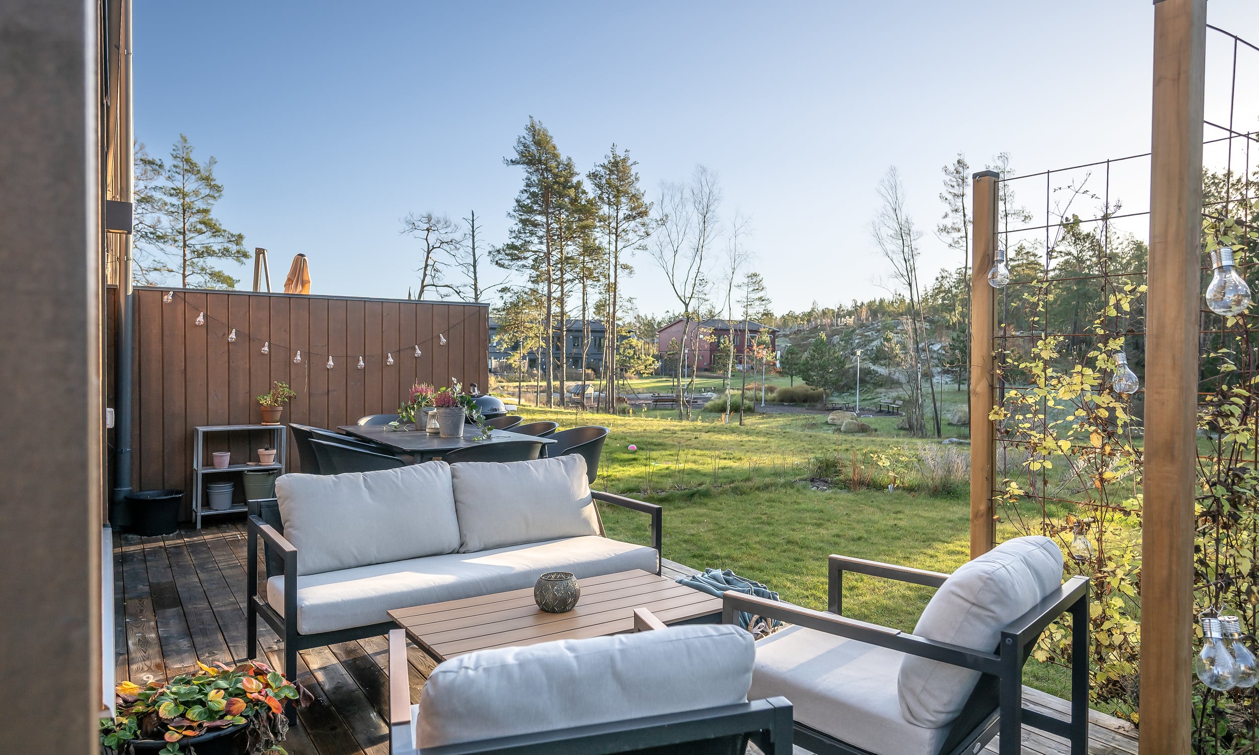 - BeskrivningDetta nyproducerade radhus, som endast haft en ägare sedan det stod klart, erbjuder en genomtänkt planlösning och exklusiva tillval som höjer både funktion och estetik. Här möts du av ett integrerat kökspaket med stilrena, moderna lösningar och högkvalitativa materialval som gör matlagningen till en fröjd. De genomgående beigea väggarna skapar en varm, harmonisk och neutral bas som passar alla inredningsstilar. Bostaden präglas av ljus, rymd och en lugn atmosfär, med öppna sällskapsytor på entréplan och privata sovrum en trappa upp. Stora fönster släpper in generöst med dagsljus och förstärker den moderna känslan. En av hemmets absoluta höjdpunkter är den insynsskyddade uteplatsen, som vetter mot allmänningen och berget. Här bor du med naturen som närmsta granne, och det är inte ovanligt att älgar passerar förbi – en unik och charmig detalj som ger en känsla av att verkligen bo mitt i skärgårdsidyllen. Vidare erbjuder Radhuset: - Exklusivt integrerat kökspaket - Genomgående beige väggar för en harmonisk helhet - Uteplats med naturnära läge mot allmänning och berg - 10 kvm förråd för cyklar och liknande Ett perfekt hem för dig som söker modern komfort kombinerat med genuin naturnärvaro. Välkommen att uppleva detta radhus på plats!