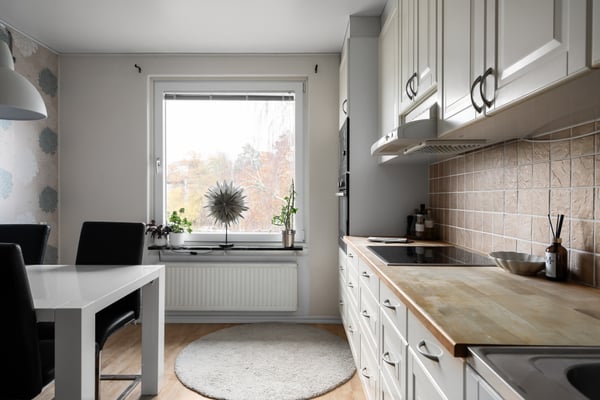 - BeskrivningHögst upp med magisk utsikt över Nickstaviken – Välkommen till Sigyns väg 14B! Välkommen hem till denna ljusa och insynsskyddade lägenhet högst upp i huset, där ni varje dag får njuta av stillheten och den vackra utsikten över glittrande Nickstaviken och den omgivande grönskan. Här bor ni med frihetskänsla och naturen som närmsta granne – ändå med närhet till allt ni behöver i vardagen. Det rymliga vardagsrummet badar i ljus tack vare det stora fönstret, och rymmer enkelt en stor soffgrupp, soffbord och bokhylla. Härifrån nås även den trivsamma balkongen där ni kan slå er ner med en kopp kaffe och njuta av kvällssolen medan blicken vandrar ut över hav och skog. Lägenheten har tre välplanerade sovrum – det större med utsikt mot vattnet, och de två andra med lugnt läge mot framsidan av huset. Perfekt för familjen, gästrum eller hemmakontor. Köket är både funktionellt och socialt, med gott om arbetsyta och plats för en matgrupp för upp till sex personer. Här blir matlagningen en naturlig del av umgänget. Det rymliga badrummet är utrustat med badkar, toalett, handfat och tvättmaskin – allt för en smidig vardag. Dessutom finns en praktisk klädkammare som erbjuder generösa förvaringsmöjligheter.