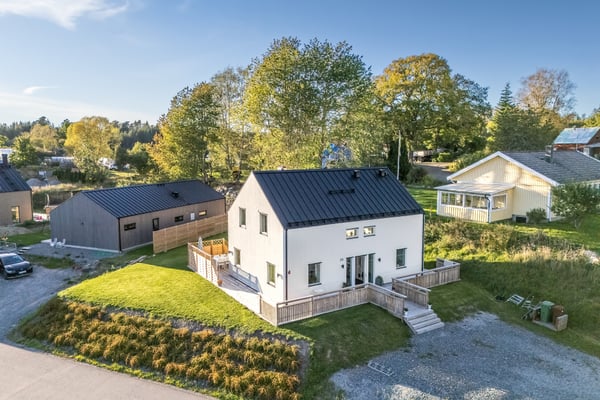 - BeskrivningVälkommen till ett hem som har allt barnfamiljen kan önska sig – ett nyproducerat och välplanerat hus med ett fantastiskt hörnläge, stor tomt, sol från morgon till kväll och gångavstånd till skola. Huset ligger i ett lugnt och familjevänligt område som växer stadigt, med närhet till grönområden, lekplatser, framtida butiker och aktiviteter. Här bor ni med Raoul Wallenbergskolan endast ett stenkast bort, vilket gör vardagen både enkel och trygg. Den generösa hörntomten är en av områdets bästa, här finns gott om plats för barnens lek, studsmatta, odling eller kanske ett framtida växthus. Den fina altanen i västerläge bjuder på härlig kvällssol och blir snabbt en naturlig plats för familjens måltider, grillkvällar och umgänge. Huset är genomtänkt i varje detalj med smarta ytor som passar familjelivet perfekt. Här kombineras funktion med trivsel, öppna sociala ytor för gemenskap och privata rum där alla får sitt eget utrymme. Med energiklass B är huset både miljövänligt och ekonomiskt, ni får låga driftkostnader, möjlighet till grönt bolån hos de flesta banker samt många års garantier och ingen fastighetsskatt förrän 2038! Kommunikationerna är utmärkta. Från området tar du dig enkelt till Nynäshamn centrum på ca 12 min eller Stockholm på ca 30 minuter, vilket gör att du kan kombinera lugnet med smidig pendling. Sammanfattningsvis är detta ett modernt, bekvämt och energisnålt hem med perfekt läge för barnfamiljen, där både huset, tomten och omgivningarna bjuder in till ett tryggt och trivsamt liv. Varmt välkommen på Visning!