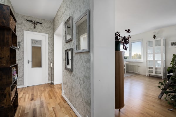 - BeskrivningVarmt välkomna till Vaktbergsvägen 29A, med endast en halvtrappa upp i huset finner ni denna trevliga tvårummare med en mycket tilltalande planlösning. Bostaden innehar väl tilltagna ytor samt förvaring. Genomgående fräscht med nytt golv i hela lägenheten samt trendiga kulörer på väggar i kombination med de stora fönsterpartierna i tre väderstreck som skapar en känsla av hög standard. Generöst och unikt kök med stora arbetsytor för er matlagning. Matplats och vardagsrum i öppen planlösning vilket skapar en härlig rymd och perfekt för stora sällskap. En stor inglasad balkong med vy ut mot grönskan och som även har plats för soffgrupp, eller varför inte lite blommor och odling. Här kommer ni att bo med ett väldigt bekvämt avstånd till allt ni behöver i vardagen, matbutiker, gym, restauranger och kommunikationer i form av pendeltåg endast 5 minuters promenad bort och buss ännu närmare. Sammanfattningsvis är det en otroligt mysig lägenhet med nära anslutning till allt för en komfortabel vardag. Kontakta ansvarig mäklare för mer information! OBS: Enligt mäklarbild disponeras lägenheten som 3 rum och kök men är idag 2 rum och kök.